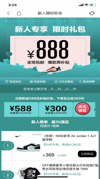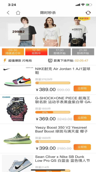 3、限时秒杀,每一个时段都有惊喜,上新预告,为您关注最新降价的品牌专区。