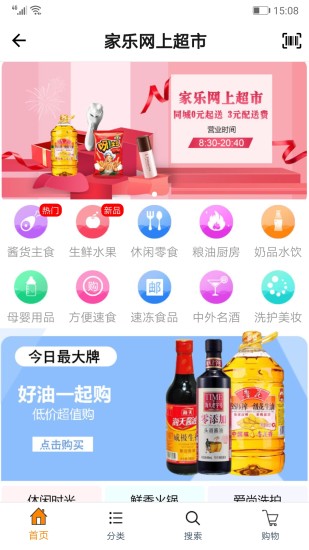 家乐网上商城安卓版提供便捷的超市和外卖配送服务,线上即可逛超市,优惠商品早知道,生鲜蔬果、零食饮品、粮油米面、方便速食、日用百货一应俱全,还有超多美味食物可以选择,欢迎感兴趣的朋友下载体验!
