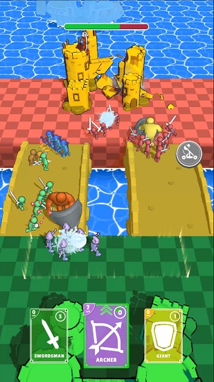 3、战斗中要小心你的对手,城堡会不断召唤士兵,玩家需要摧毁对方的城堡。