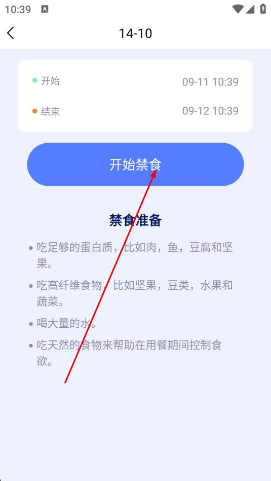 2、进入所选禁食计划详情页面,查看禁食准备相关提示后,点击开始禁食按钮。