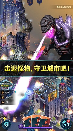 - 哥斯拉系列怪兽突袭东京、伦敦、悉尼等主要城市,玩家通过建设基地,使用策略来守卫城市!