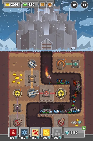挖掘塔防是一款防守塔防类的手机游戏,你需要在地下城进行防守,用来防止怪物攻上地面,挖掘出地道,并在地道中布下防御塔,歼灭对面来的敌人,游戏中有许多品种的塔,玩到后面就会逐渐解锁,你还可用金币给塔升级,还在等什么,快来下载玩玩吧!