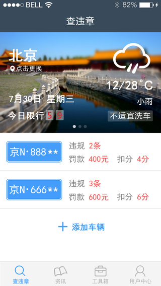 4.车辆同步:添加车辆同步至帐号,任何手机登录均能查询;