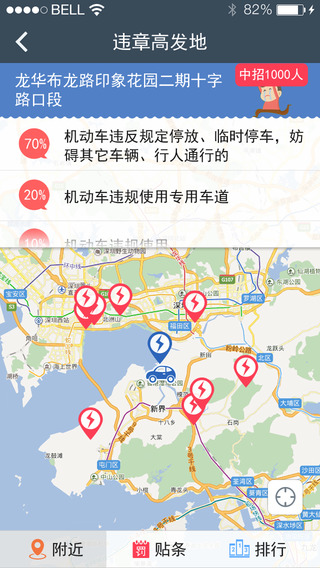 2.违章高发地:附近违章、贴条路段,提前预知;