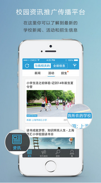 对家长、学生全部免费,只要有手机就能实时的收到校内,以及自己关注的学校相关信息。