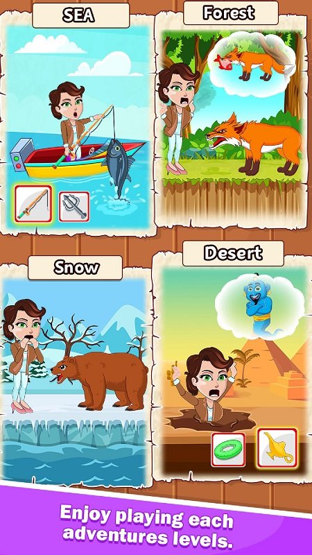 根据任务的提示完成通关,在解谜互动中了解这里的策略,发散自己的思维,在博弈中开始互动思考,挑战更高级别的冒险,在益智的挑战中升级互动;
