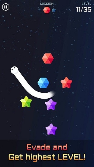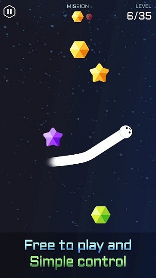 1.拖动手指在太空中吃掉星星宝石,使蠕虫变长。