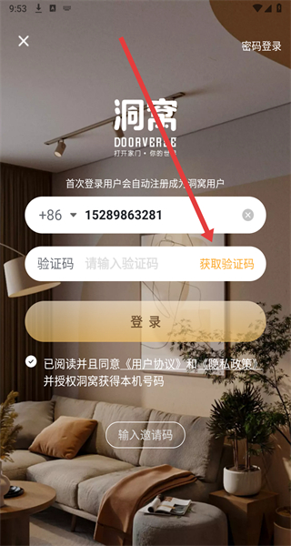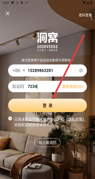 4、在获取到验证码后填写,点击下方登录按钮,即可完成登录。