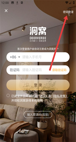 3、在进入到登录页面后,点击上方密码登录按钮,切换使用密码进行登录。