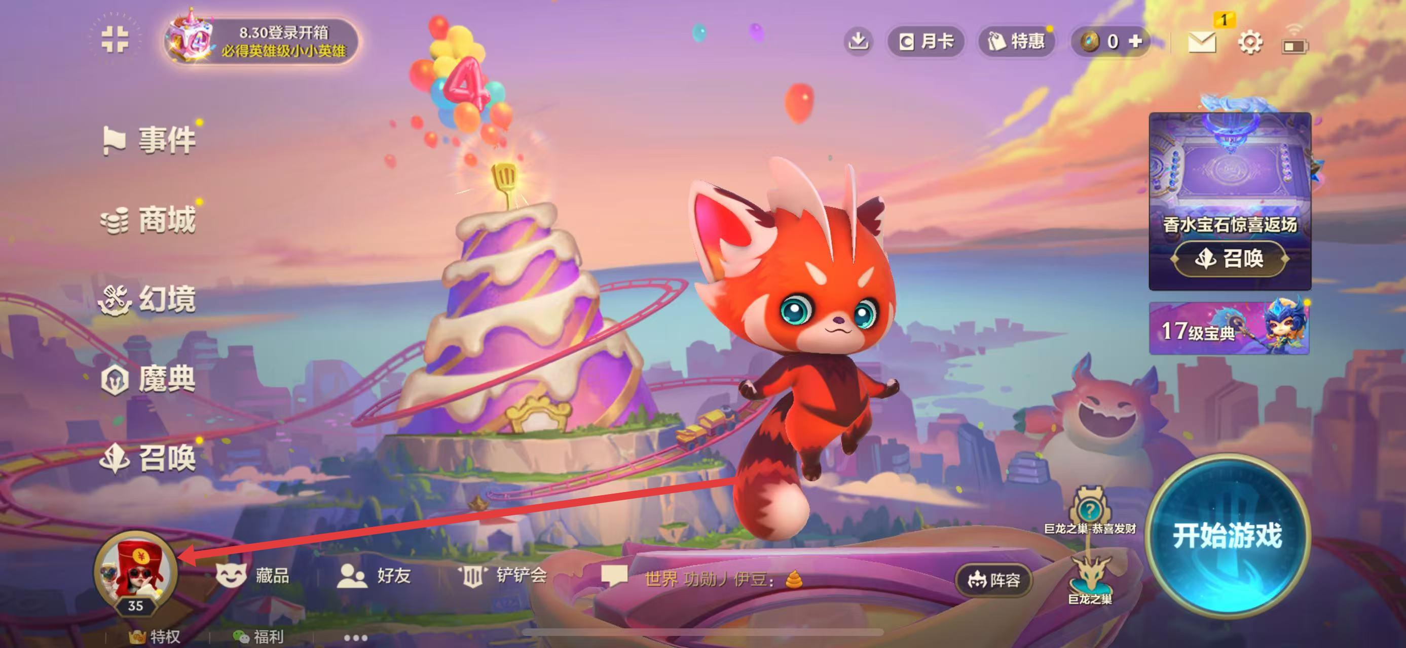 1、打开金铲铲之战游戏,进入主界面,点击左下角的个人头像,进入生涯界面。
