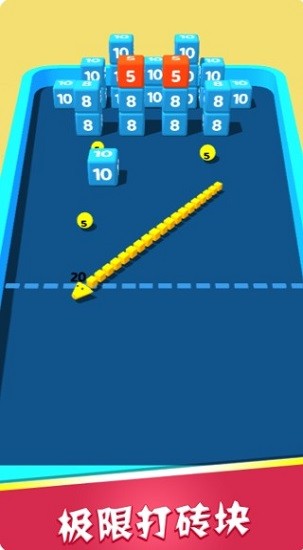 2、很多小伙伴都在玩,画面简洁,极易上手,通过控制小球组成的贪吃蛇,越过重重障碍,击打方块获取相应积分才能通过
