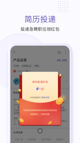 1、免费/有偿联系,尊重人才价值与变现,投递急聘职位领红包;