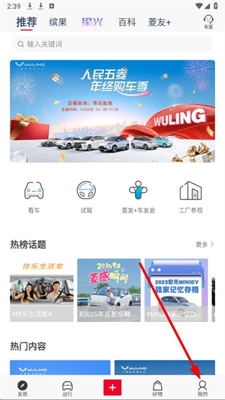 1、打开五菱汽车app,进入我的界面,点击左上角设置图标。