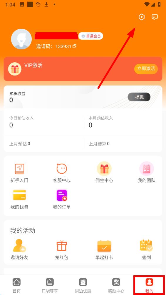 1、打开小口袋app,点击底部我的选项,在右上角点击设置图标,进入设置界面。