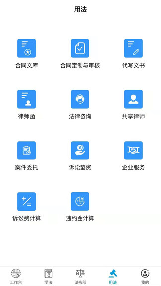 4、详细记录咨询法务、合同下载、合同定制、合同审核、律师函等数据信息.
