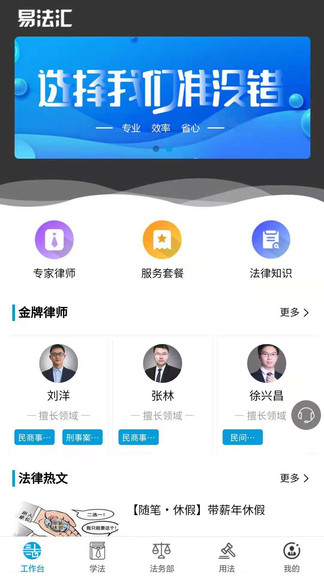 易法汇最新版是一款能够帮助中小型企业解决一切法律相关的问题的软件。用户在出现各种问题需要法律支援的时候只要下单就能够有各大专业律师为用户提供全面的服务,直到解决客户相关的法律问题,让客户感受到最专业的法律服务。