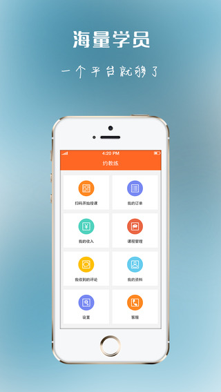 1.海量学员:周围海量学员,再不用坐班,有了“约练”APP,不为学员发愁