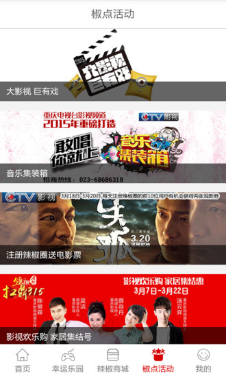 重庆广电影视传媒官方应用,海量本地活动等你浏览,每天上班、下班、睡前用手机要做的三件事:刷微博、聊微信、玩辣椒圈!