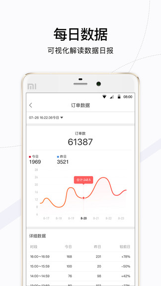 2、可视化的解读数据日报,让你轻松查看和了解每天的经营数据;