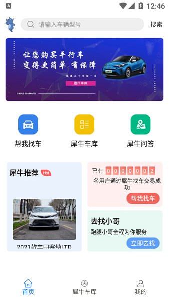 犀牛找车app是一款专业的汽车服务软件,犀牛找车帮助用户轻松找车买车,使用方法简单,在犀牛找车这里汇集了海量品牌车辆类型,用户可以直接在车库里面查看汽车信息,也可以了解每日推荐的车辆,专业人员为你解答各种汽车问题,解决用户购车地严查,怕上当受骗等一系列问题。