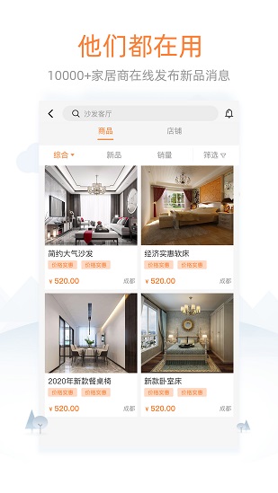 为广大经销商提供优质性价比家具,以及家具新款的互联网电商平台。帮助家具经销商解决进货难、看货难、销售难的痛点,是家具行业人员专属的看货工具。软件上的各类家具性价比超高,价格实惠,一键购买送货上门,需要的快来购买!