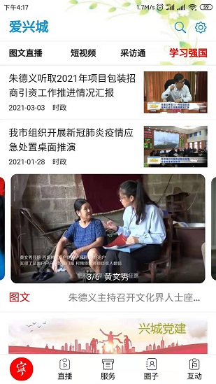 是由兴城市融媒体中心管理运营的新闻客户端,全天24小时为大家了解最近的新闻资讯热点,主要面向于兴城市,也是当地权威的新闻发布平台,通过新闻、直播、圈子、服务、互动等板块,为用户提供了新闻阅读、视听直播、政务互动等功能和服务,让用户一站式查询信息的同时,还可以便捷的进行信息互动和信息共享。