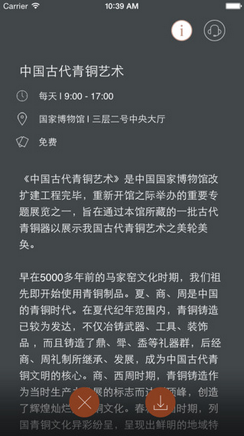博物app是一款专为用户参观博物馆使用的语音导航应用软件,使用该应用可以帮助用户在参观博物馆的时候路线更顺利,不用到处看指示牌,到处问路。更有作品语音解说,让用户更好的参观,对展品更加了解。赶紧下载使用吧~