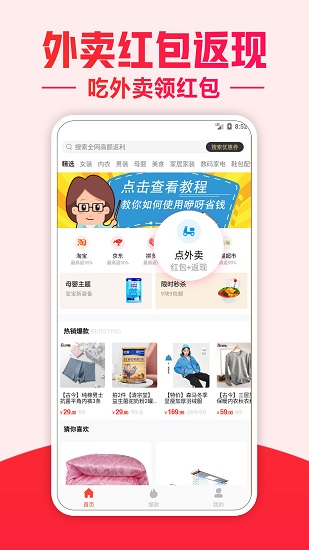 4、专业买手选款,全品类覆盖,专享返利,购物同时能赚钱。