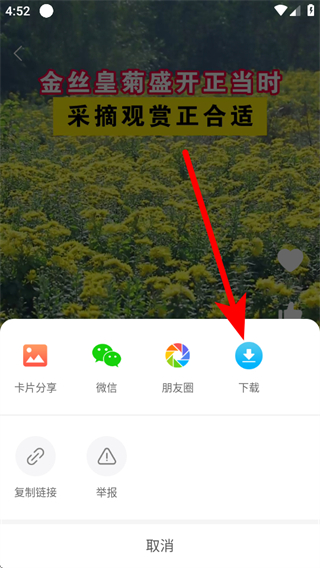 4、在操作选项菜单中,点击下载按钮,即可将该短视频保存至本地。