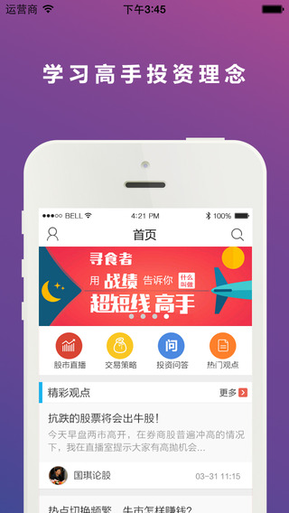在这里,我们邀请到中国民间最具实力的实战派投资高手,免费为投资者提供咨询、点评、交易提示等服务。让投资者的投资更简单,快速掌握投资机会。