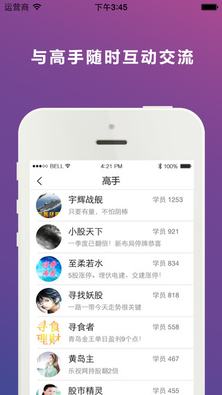 直播室:随时把控市场热点直播室是投资者与实盘高手互动交流的平台,在这里,你可以随时随地向高手提问问题,了解市场热点,当然,也可以跟其他股友切磋技艺。