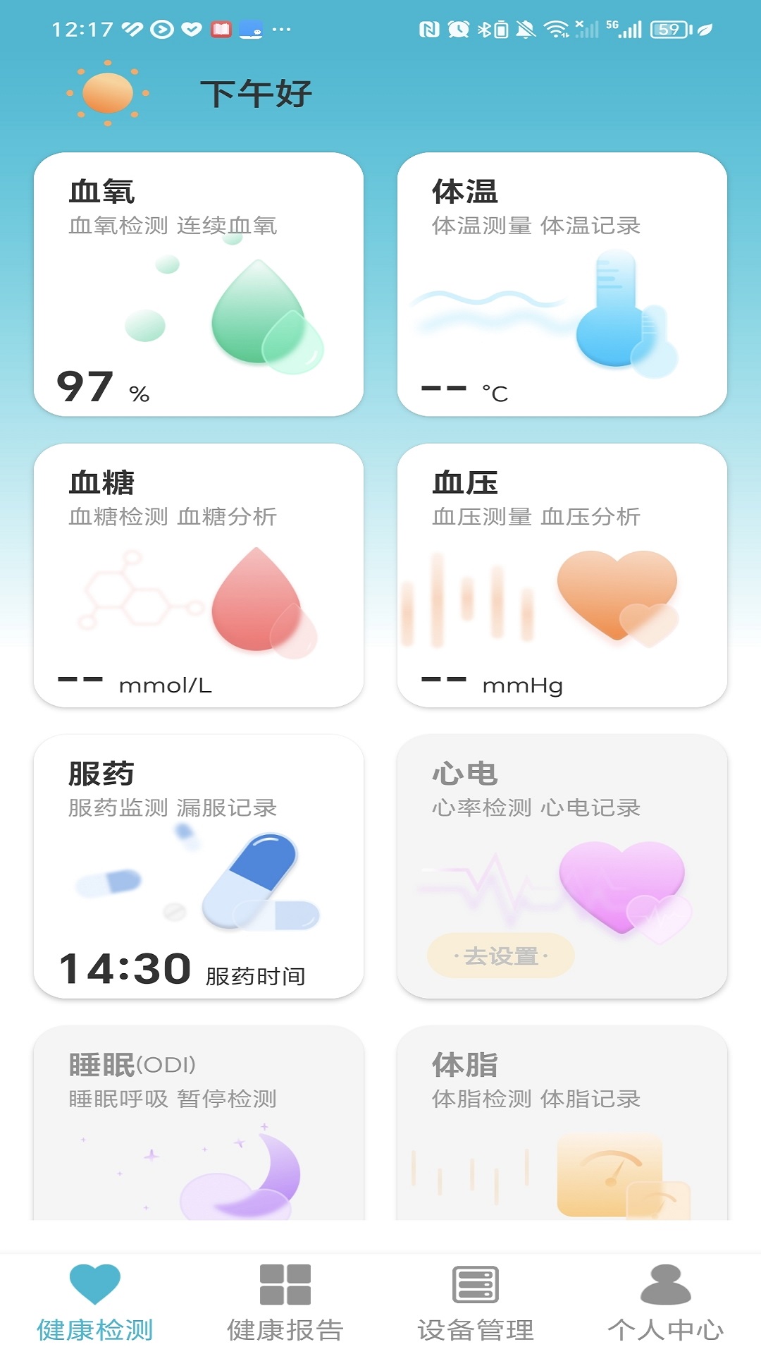 超思健康app需配合超思多款蓝牙检测设备使用。