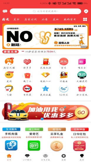 袋鼠云享是一款非常便捷的手机购物app,软件上有现在主流商城的大部分商品,淘宝、拼多多、美团、京东等等平台的商品在这里都能找到,软件还能购购买电影票、点外卖、订酒店、加油等等非常方便的功能,不关你是在线上购物使用还是线下消费使用都能够帮你省钱。