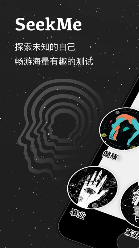 是否对自己未来的宝宝充满好奇?是否想看见若干年后的长相?是否想了解更真实的自己?SeekMe软件能满足你的要求,平日爱情,性格,健康,事业,人际多种多样的问题,在SeekM都能帮你解答,SeekMe app全面满足你的需求。