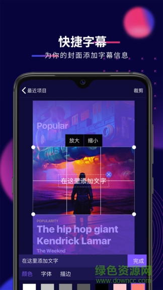 支持短视频与封面的合成、可自定义更换音乐、添加文本等功能;