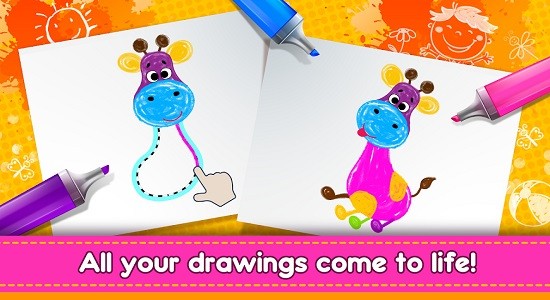 儿童色彩绘画游戏适合给孩子玩法,游戏中有众多等待填色的画面,丰富的色彩,孩子可以在这自由创作,发挥想象力,画出有趣的物体。