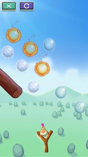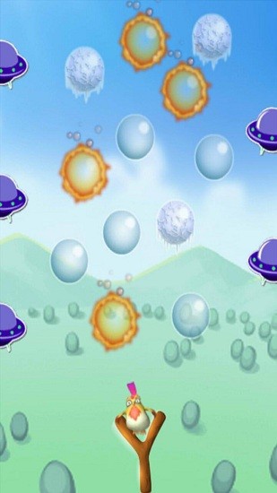 3、使用自己的弹弓去发射那些愤怒的小鸡来帮助自己顺利的撞击到那些泡泡吧;