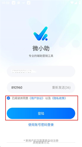 3、勾选已阅读并同意用户协议以及隐私政策,点击登陆。