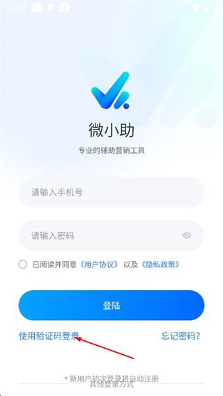 2、输入手机号,点击获取验证码,输入收到的验证码。