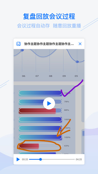 3、便捷的会议自动保存形式,开会过程会自动以录屏形式保存下来,不放过每一个重点;