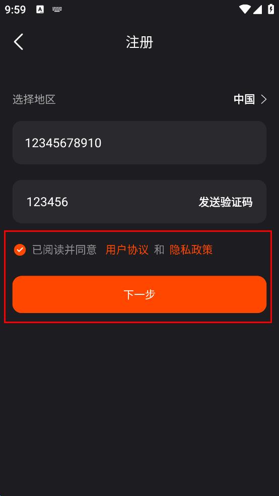 4、勾选已阅读并同意用户协议和隐私政策,点击下一步完成注册。