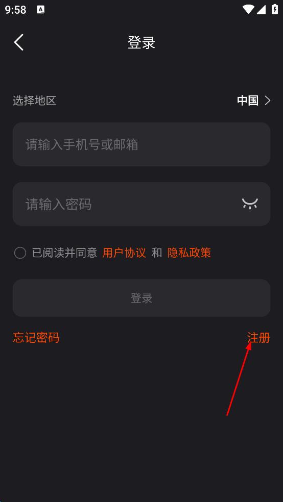 2、在登录页面点击注册,进入注册页面。