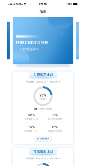 支持企业员工查看线下培训,参与线下培训报名;查看学习计划,在线完成课程学习