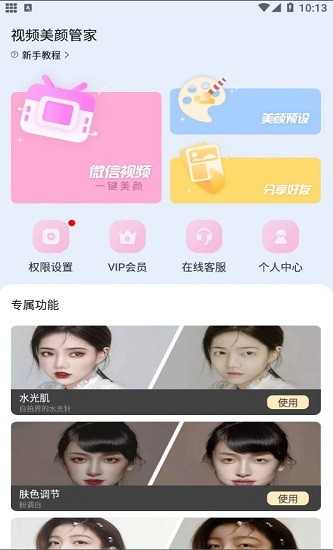 视频美颜管家是一款专业的视频美颜编辑软件,使用方法简单,在这里可以帮助用户随时开启视频美颜功能,汇集了多种滤镜和特效,让你的美颜效果更好,拥有实时美颜的效果,随时都是美美的,轻松视频通话。