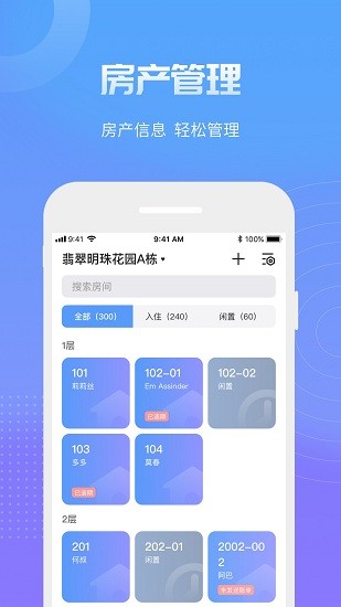 2、统一管理,方便、快捷、智能,提供租客管理、租金管理、租约管理等;