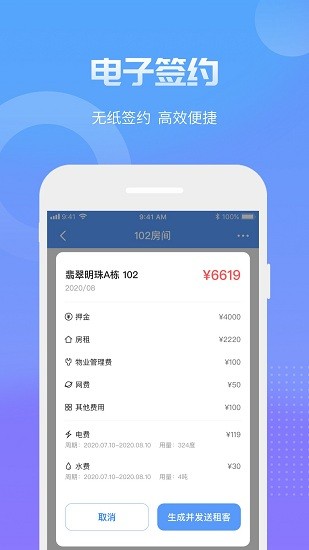 1、操作简单,绑定智能设备,与智能设备无缝对接,一键生成租房订单等;