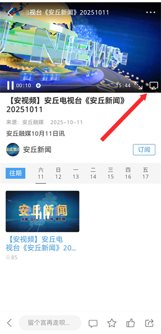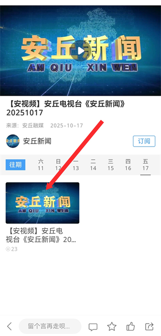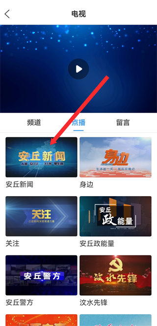 2、在电视页面的点播板块,点击安丘新闻栏目,进入新闻视频列表页。