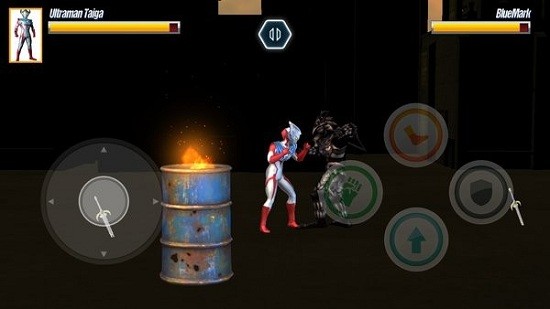 使用操纵杆运行奥特曼,然后攻击按钮攻击敌人