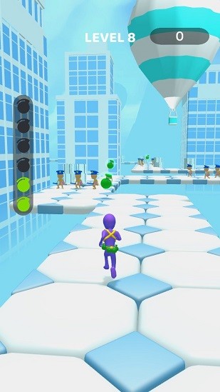 每一关都设置了任务,需要你一个个的去完成,才能收集更多的道具,非常休闲的闯关类型的游戏。你的身上会有点燃的炸弹,随着倒计时的进行,炸弹爆炸的时间也越来越短,你只有在奔跑的过程中,收集更多的炸弹来刷新引爆的时间,这样才能保护自己的生命,要躲开警察的追捕,防止炸弹爆炸。