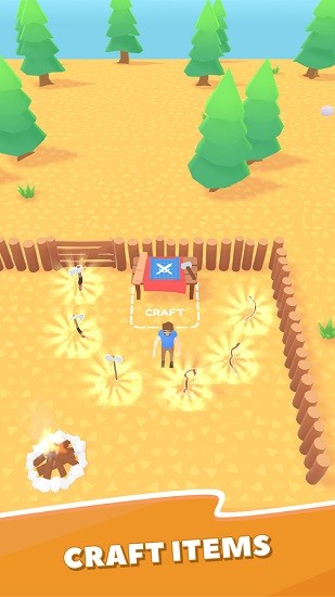 2、游戏画风还是比较新颖的,砍树的咚咚咚声也是深深地在脑子里,非常洗脑,因为只要走到树边,就会自动砍树,